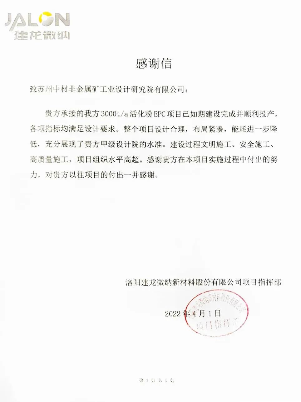 喜報頻傳獲佳績,砥礪奮進正當時。近日,蘇州非礦院提前10天完成調(diào)試交付任務,喜獲業(yè)主建龍微納感謝信!......