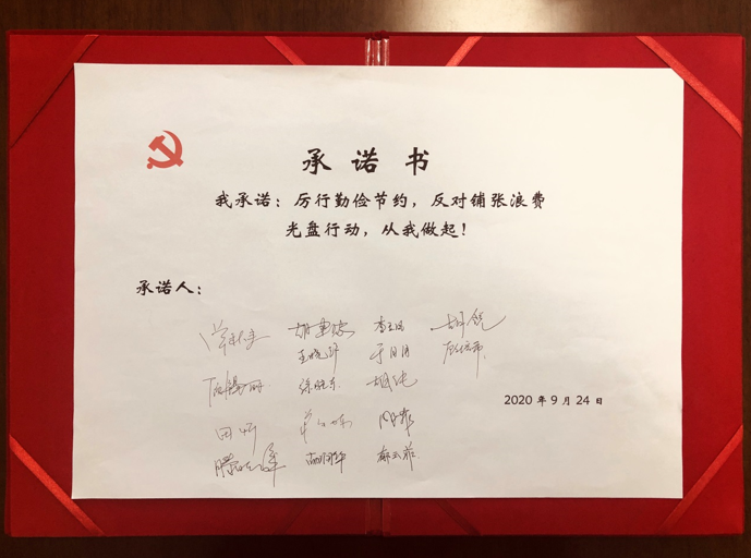 公司黨群辦制作“珍惜糧食、杜絕浪費(fèi)”專欄,加大宣傳力度,號召全體黨員在活動中發(fā)揮帶頭作用。各黨支部圍繞“厲行節(jié)約,反對浪費(fèi)”主題積極開展了黨日活動,第三黨支部別出心裁地用黨員手舉打印的漢字排成“厲行節(jié)約、反對浪費(fèi)”的口號,表達(dá)了黨員同志們踐行節(jié)約理念的決心;第五黨支部組織黨員在“光盤行動、從我做起”的承諾書上簽字,自覺將勤儉節(jié)約、艱苦奮斗的理念內(nèi)化于心、外化于行。